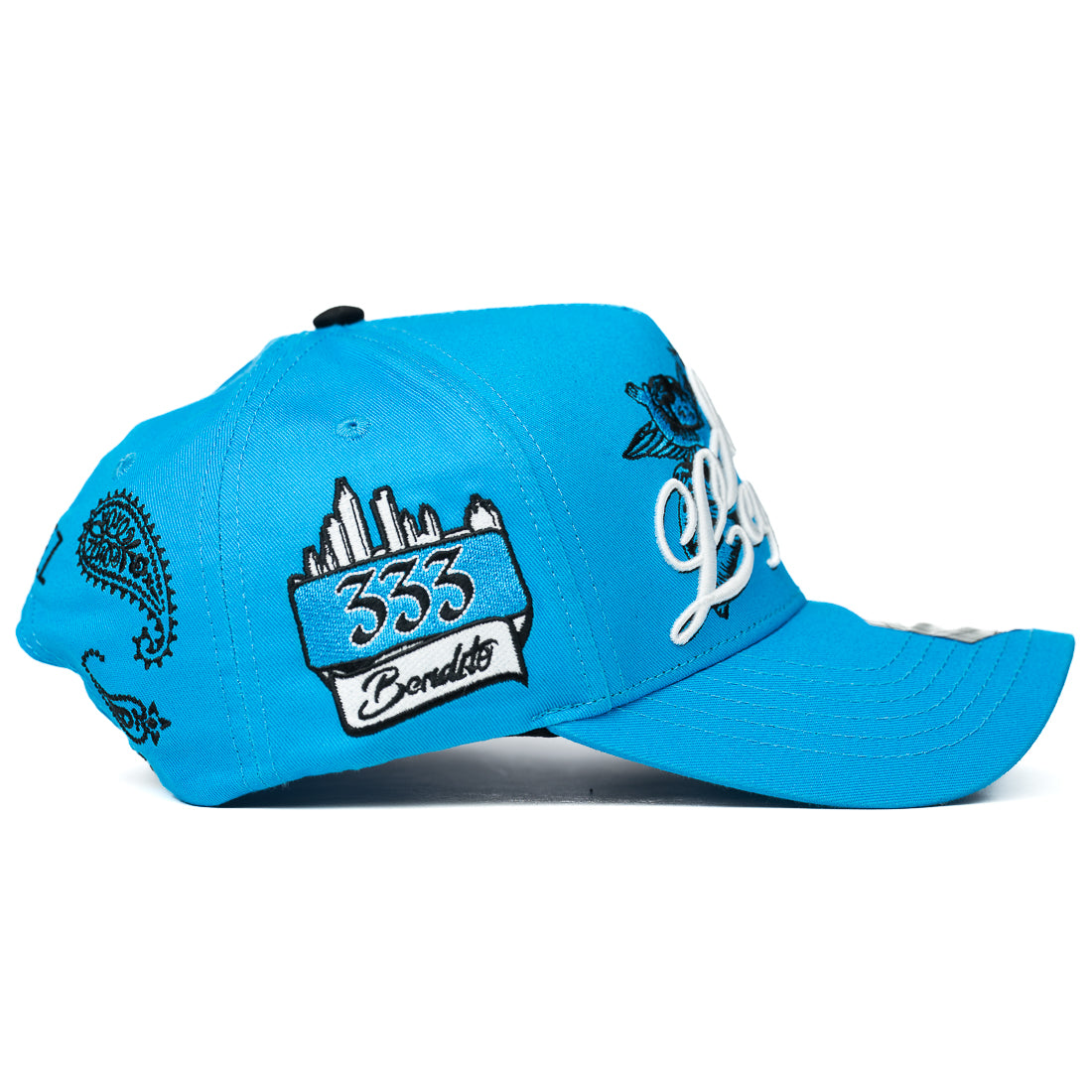 Esta gorra azul destaca por su texto “Joven Leyenda” en blanco al frente, que aporta un mensaje fresco y motivador. En la parte trasera, un ángel negro detallado se ubica detrás del texto, creando un contraste elegante y un diseño único que resalta estilo y personalidad.