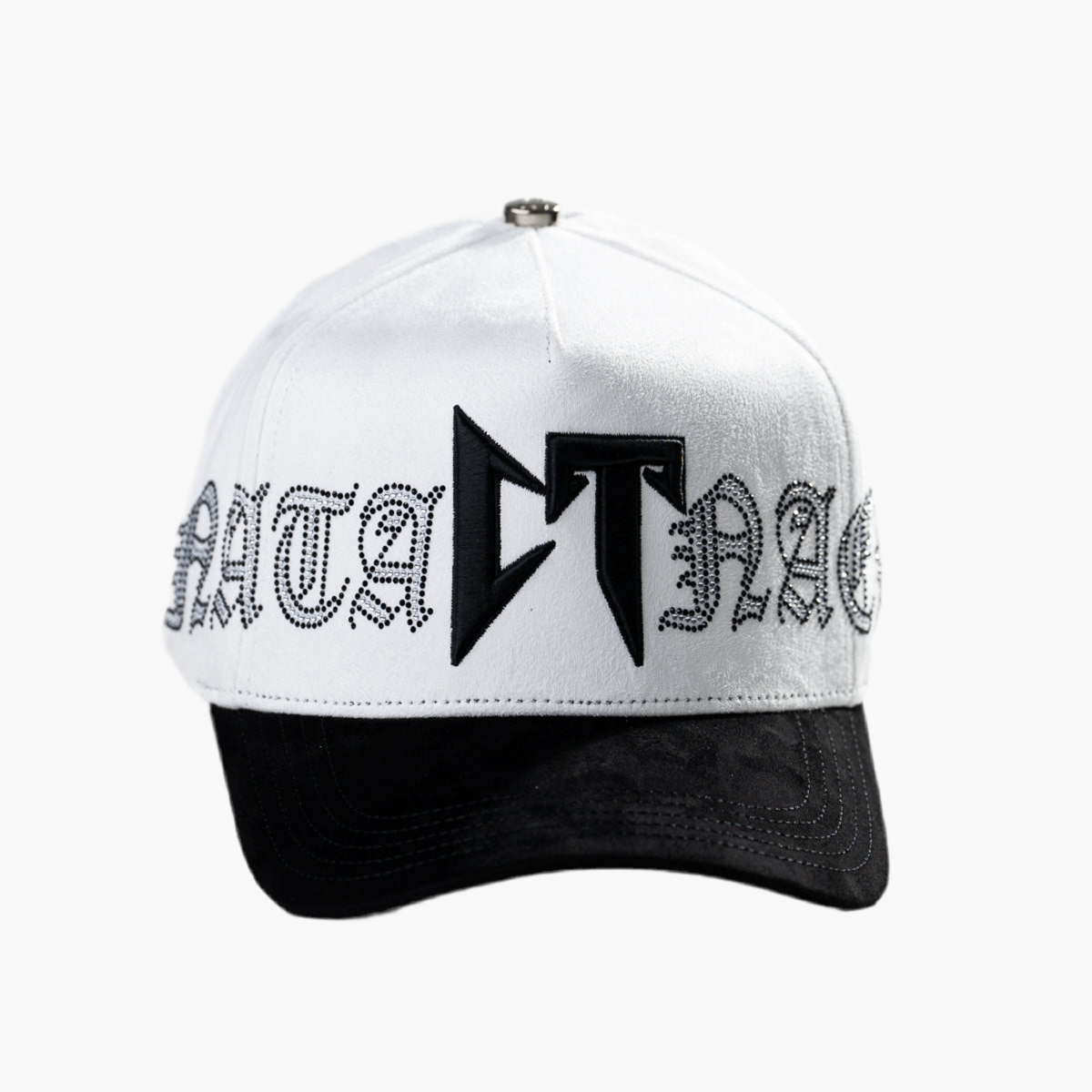 La gorra CT NATANAEL WHITE es blanca con el logo "CT" en negro al frente y visera negra. Esta pieza exclusiva es resultado de la colaboración entre CAP CULTURE y Natanael Cano, combinando estilo urbano y autenticidad, ideal para quienes buscan un accesorio moderno con identidad única.