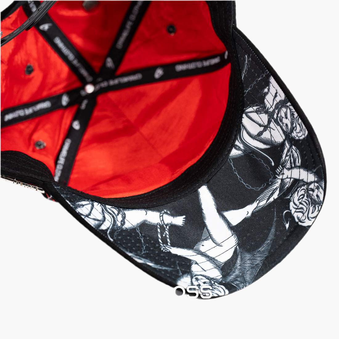 Gorra negra con un bordado blanco de las letras "CL" en el centro. A lo largo de toda la gorra, llamas rojas aportan un diseño dinámico y enérgico. Esta pieza combina contraste y estilo para quienes buscan un accesorio moderno y llamativo.