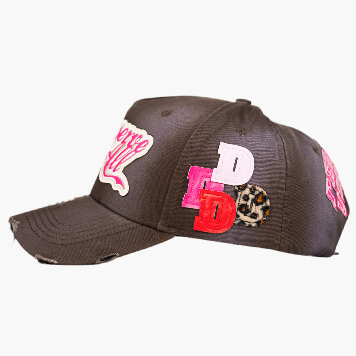 Esta gorra café presenta un parche con logotipo y, en el lado izquierdo, cuatro letras "D", cada una con un diseño diferente. Parte del drop de Dandy Hats, combina detalles únicos que resaltan su estilo distintivo y contemporáneo, ideal para quienes buscan autenticidad y originalidad.