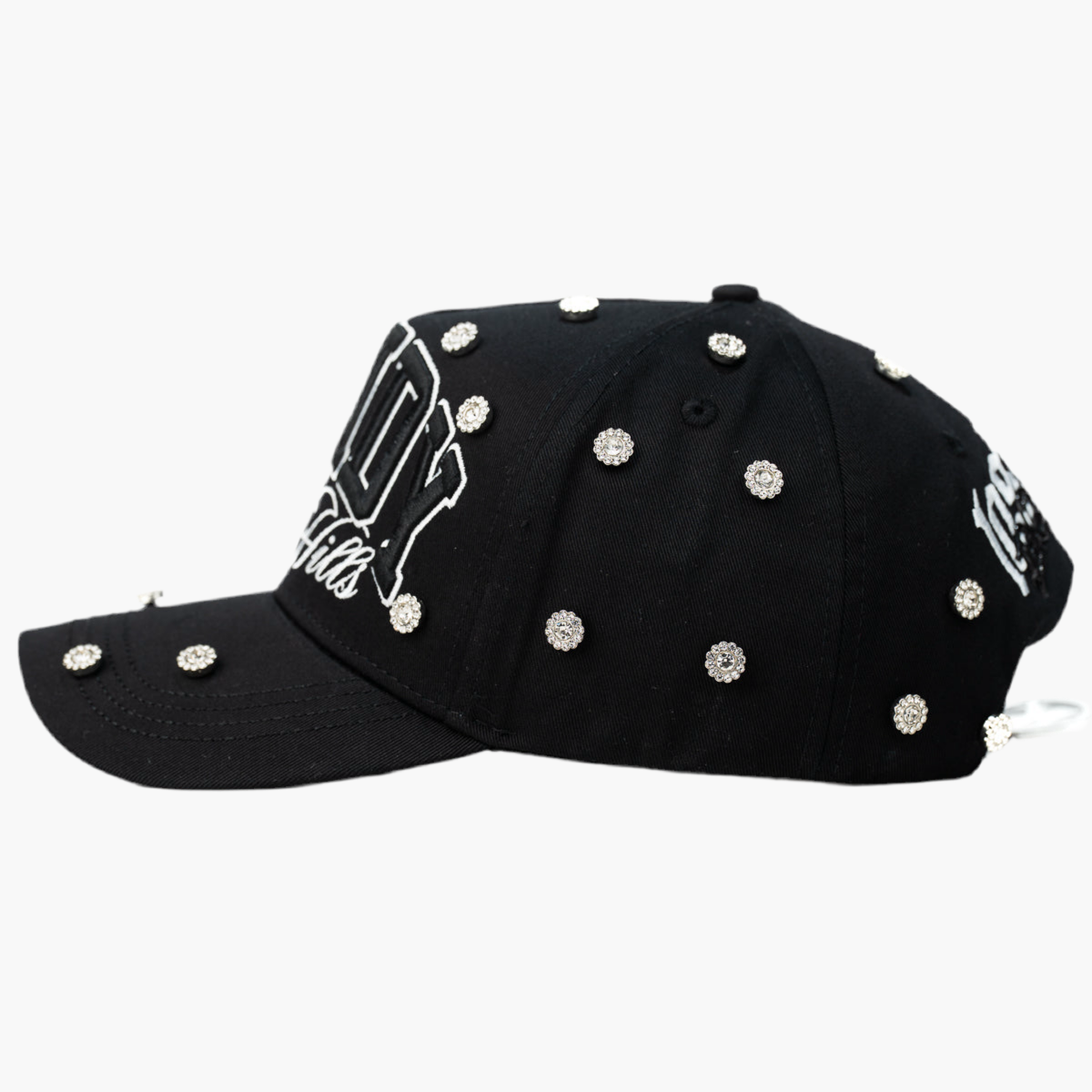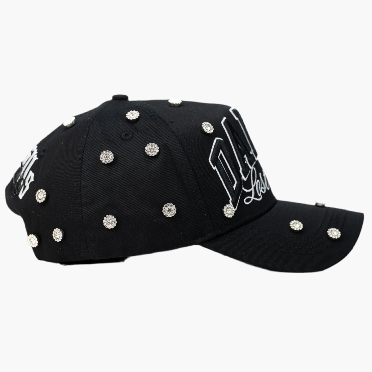 Esta gorra negra de edición limitada "HANDLE WITH CARE" presenta en el frente el bordado elegante de la palabra "dandy". Su diseño exclusivo incluye pequeños diamantes distribuidos cuidadosamente por toda la gorra, aportando un toque sofisticado y único que refleja el estilo distintivo de Dandy Hats. Perfecta para destacar con clase.