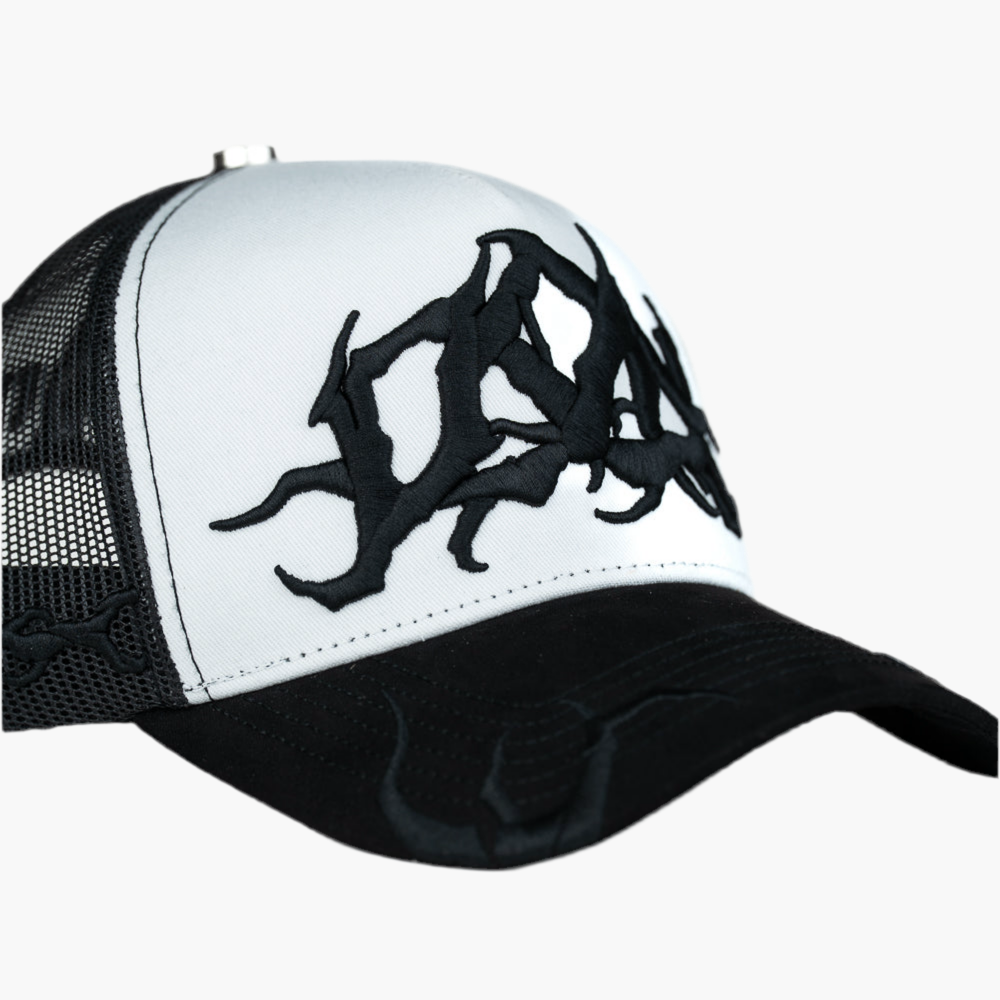 Esta gorra DON GRUNGE combina un frente blanco con un logo grunge negro que resalta su estilo urbano. La malla trasera negra ofrece ventilación y comodidad, ideal para usar todo el día. Su diseño moderno y audaz es perfecto para quienes buscan un accesorio versátil y llamativo.