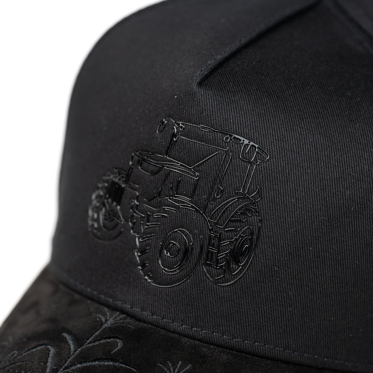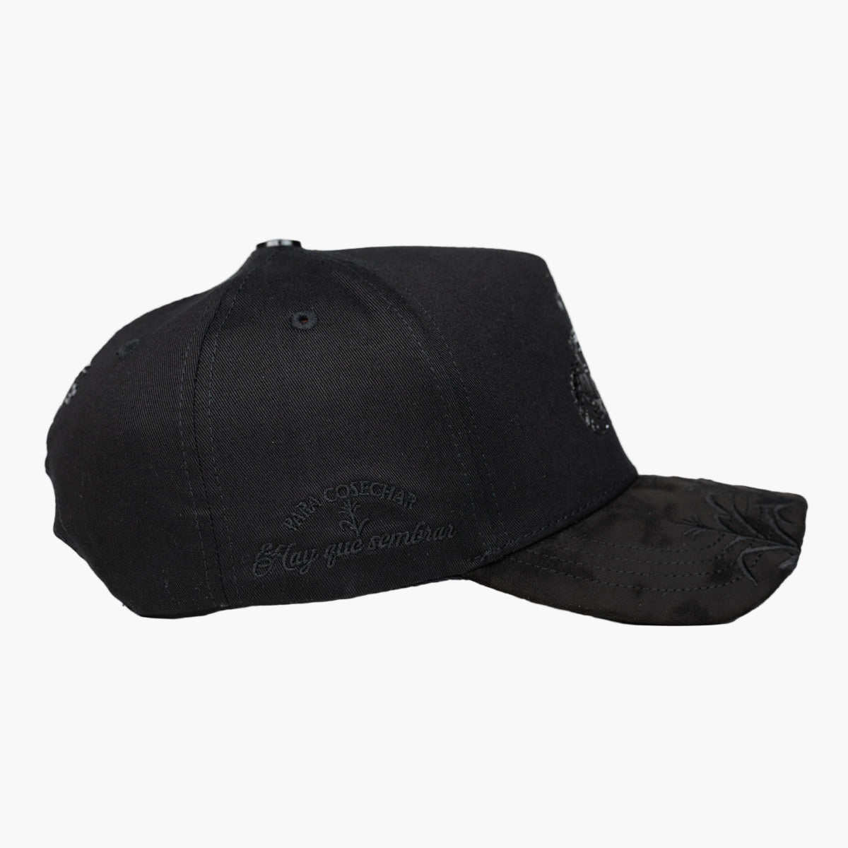 La gorra negra El Mario MT combina estilo y funcionalidad para jornadas al aire libre. Ideal para tractoristas y agricultores, su diseño resistente y cómodo protege del sol mientras trabajas en el campo, recordando que para cosechar hay que sembrar con dedicación y esfuerzo constante.