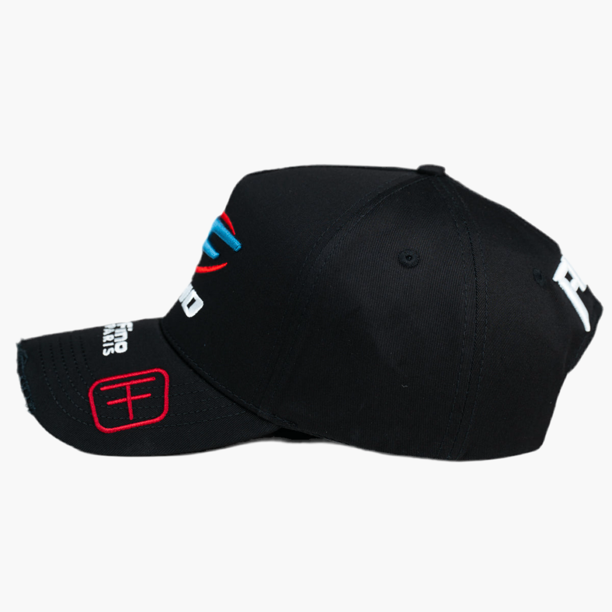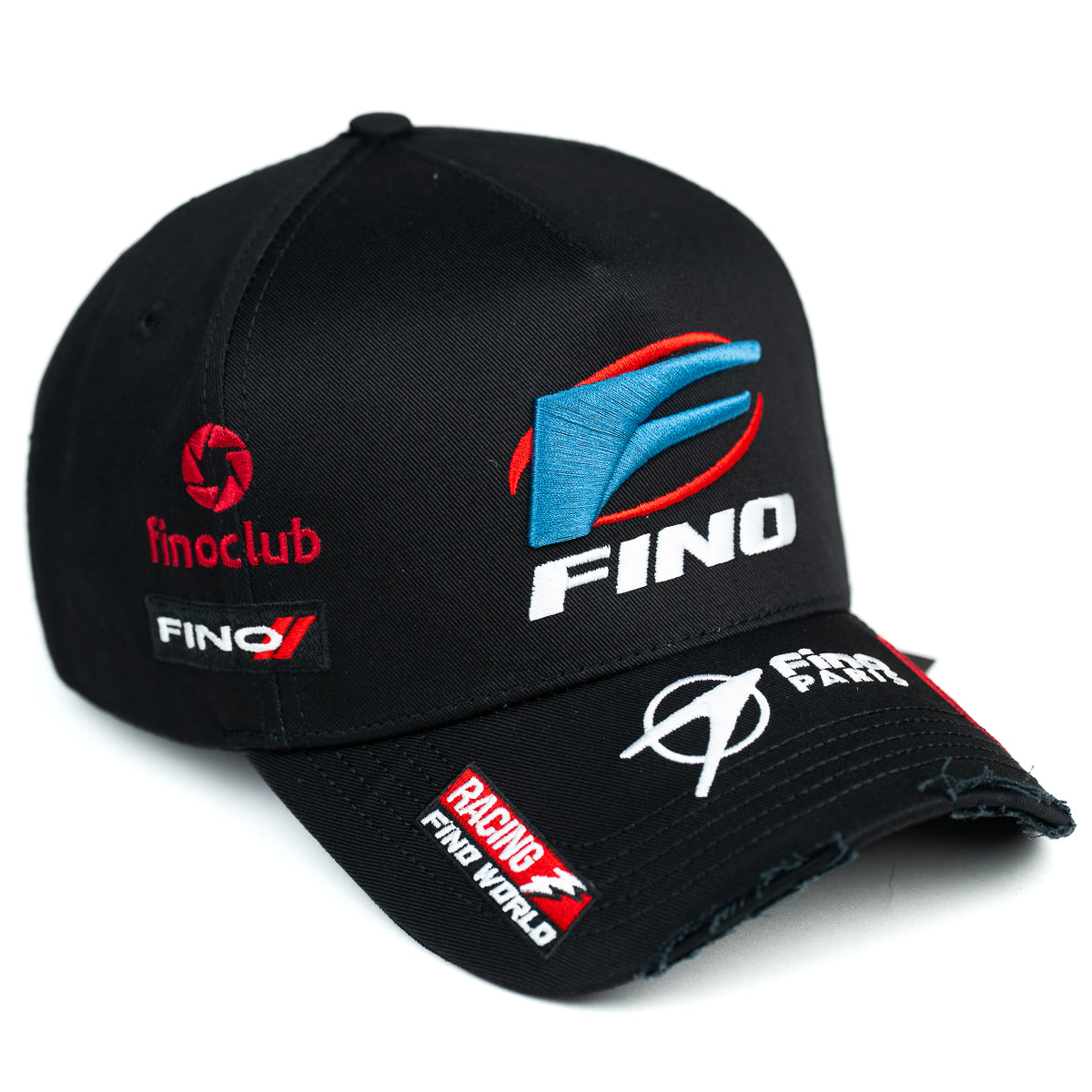 La gorra negra FRANCE presenta una letra F bordada en azul en el frente, con el texto FINO en blanco justo debajo. En el lado derecho luce el logo rojo de Fini Club. Este diseño del drop Fino Europa combina estilo y detalles únicos para un accesorio moderno y distintivo.