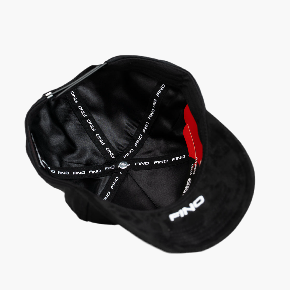 Gorra negra con texto "FINO RACING" en blanco y rojo al frente, acompañado de caracteres chinos y la palabra "Tokyo" bordada en rojo, junto a la bandera de Japón. En el costado derecho, parches variados de Fino x Japón completan este exclusivo drop con estilo único y llamativo.