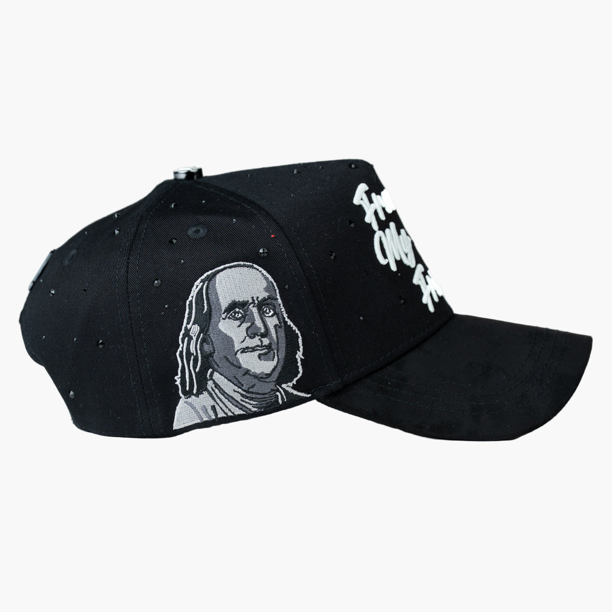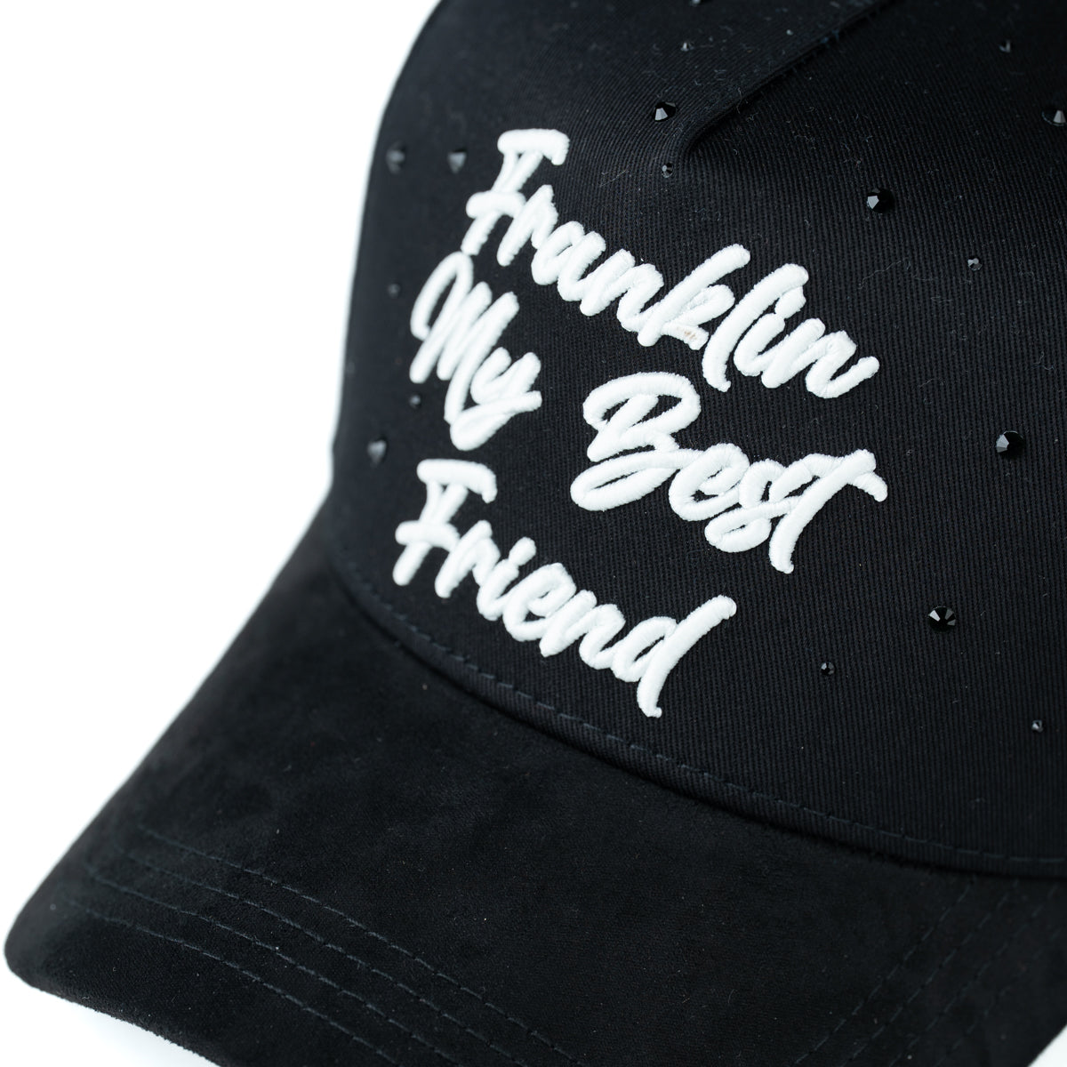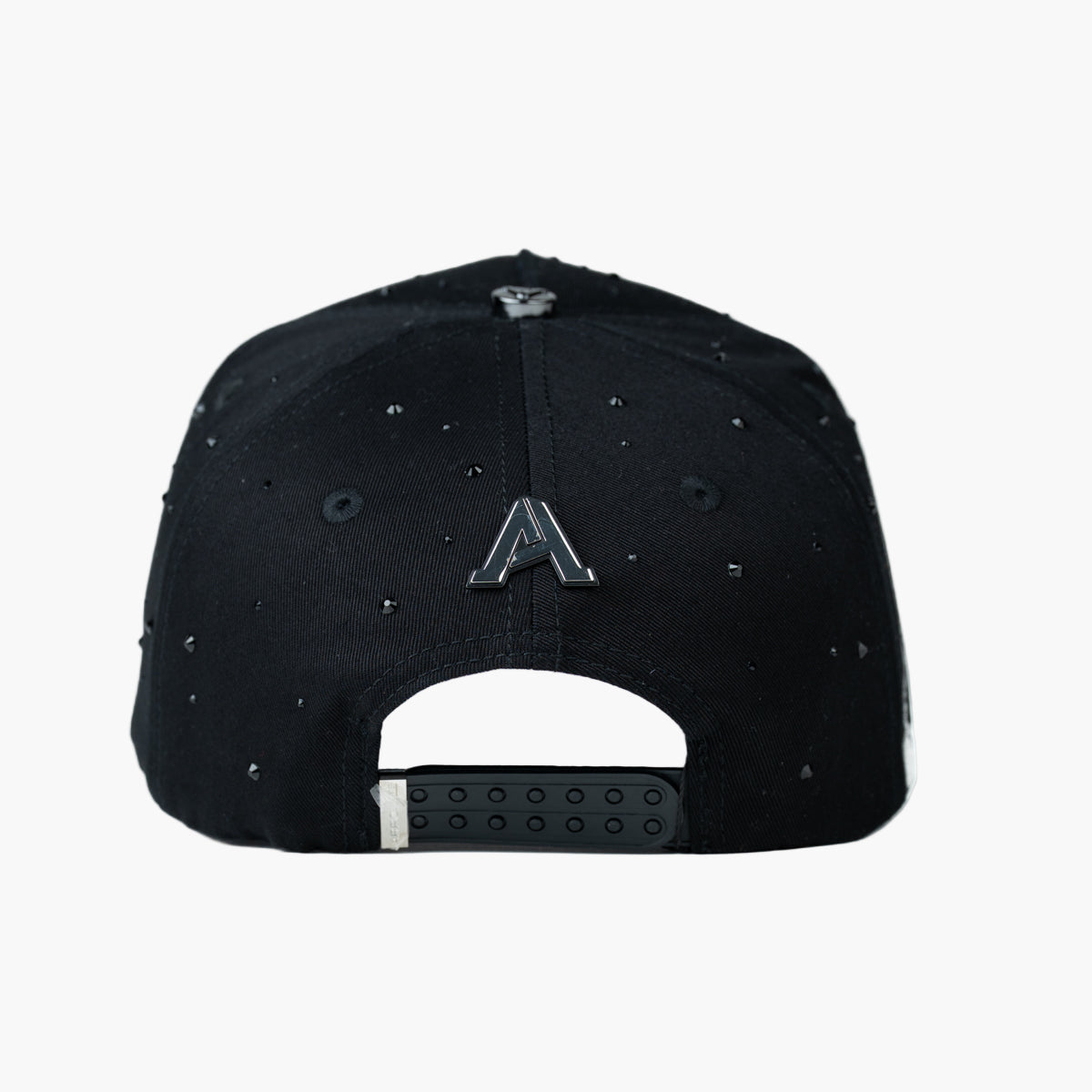 Gorra Arpol Hats con placa de metal decorada con pedrería estilo Nueva York. Diseño sofisticado que fusiona elegancia urbana con detalles brillantes. Un accesorio versátil ideal para cualquier ocasión, combinando comodidad y estilo contemporáneo.