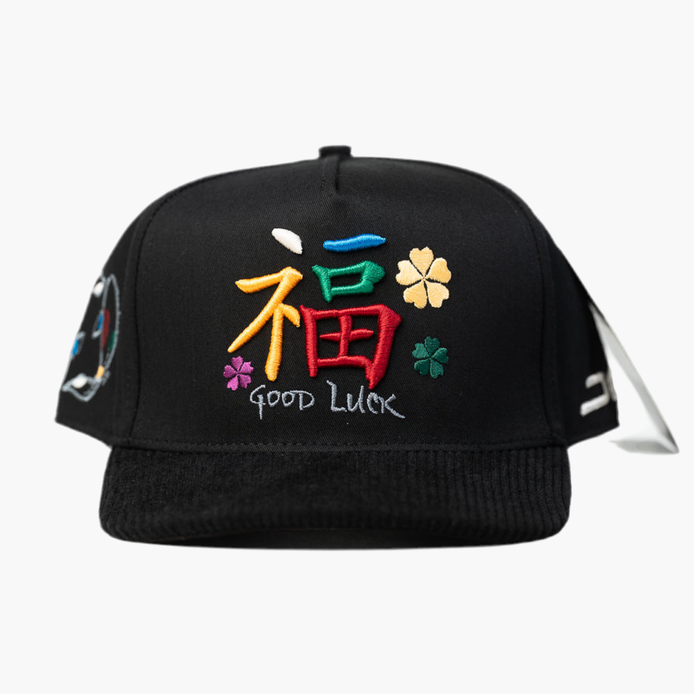 Esta gorra negra destaca por su diseño simple y elegante. En la parte central, lleva una letra china de varios colores que aporta un contraste sobrio y moderno. Perfecta para complementar cualquier estilo, ofrece un look discreto pero con un detalle que llama la atención sin ser exagerado.