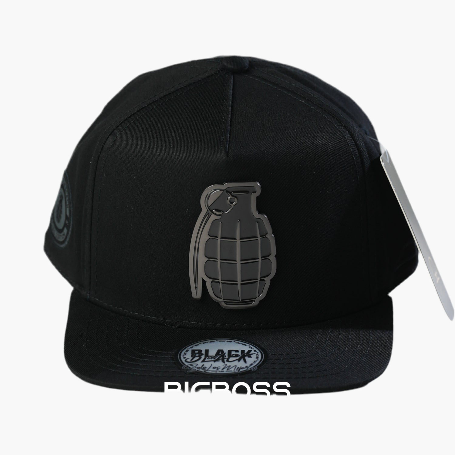 Esta gorra negra destaca por una placa frontal con el diseño de una granada en color gris. Su acabado sobrio y moderno aporta un estilo audaz y distintivo, perfecto para quienes buscan un accesorio que combine sencillez con un detalle único que refleja personalidad y fuerza.