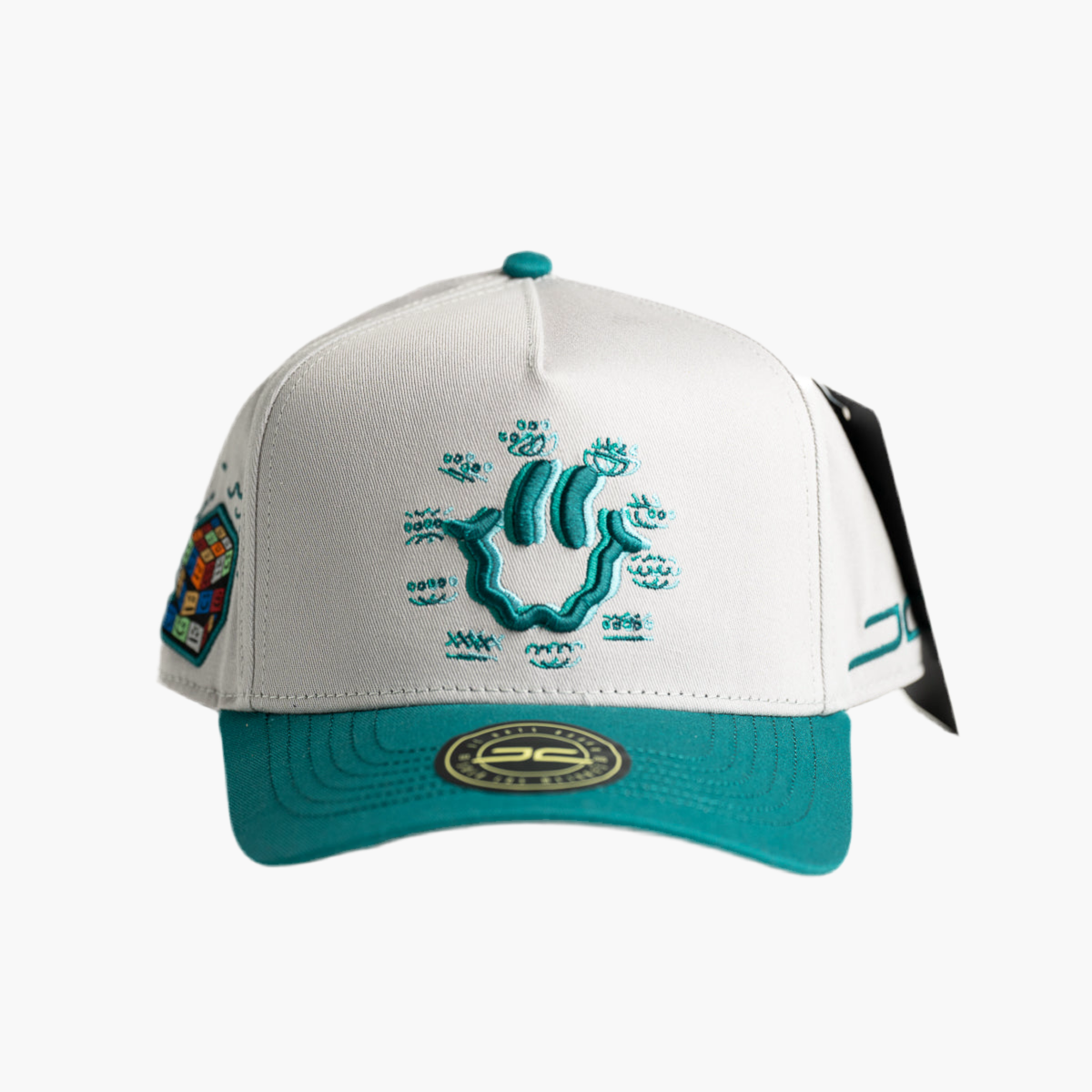 Esta gorra gris destaca por una cara feliz roja en el frente y un cubo Rubik en el lado izquierdo. La visera azul añade un contraste vibrante, creando un diseño divertido y moderno. Ideal para quienes buscan un accesorio alegre y llamativo en su estilo diario.
