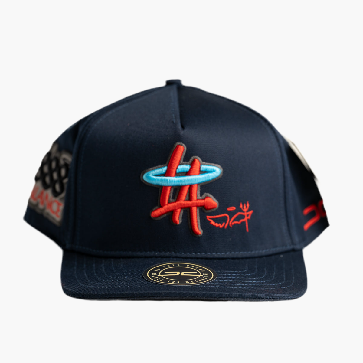 Esta gorra azul presenta el logo "LA" en rojo en el centro y el logo "888 balance" en la parte izquierda, con los números ocho en gris y detalles en rojo. Su combinación de colores aporta un diseño equilibrado y llamativo, perfecto para un estilo urbano y contemporáneo.