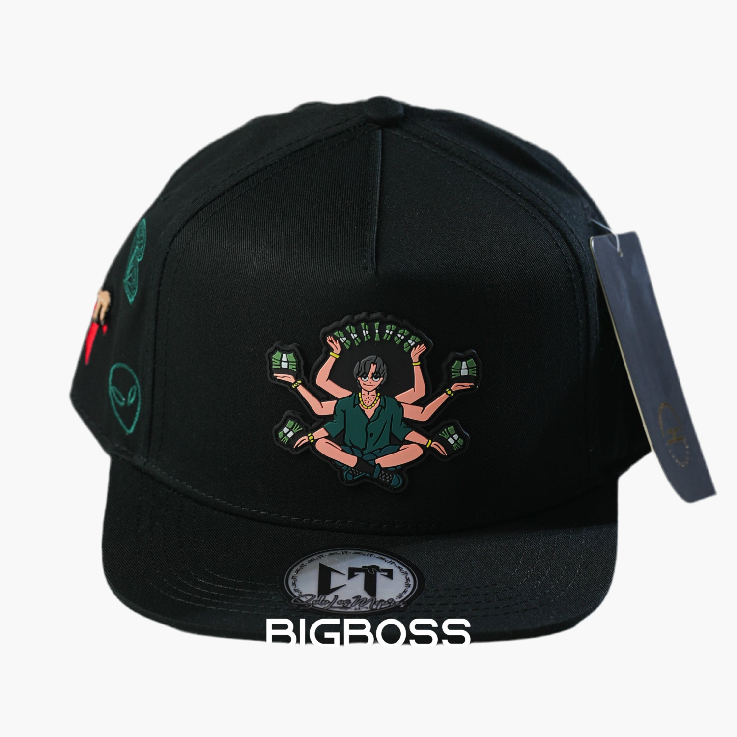 Gorra negra con diseño plano que destaca por su logo de hule en la parte frontal. El logo muestra “Natanel Cano Co” junto a seis manos sosteniendo billetes, simbolizando éxito y abundancia. Un accesorio único que combina estilo urbano con un mensaje potente y auténtico.