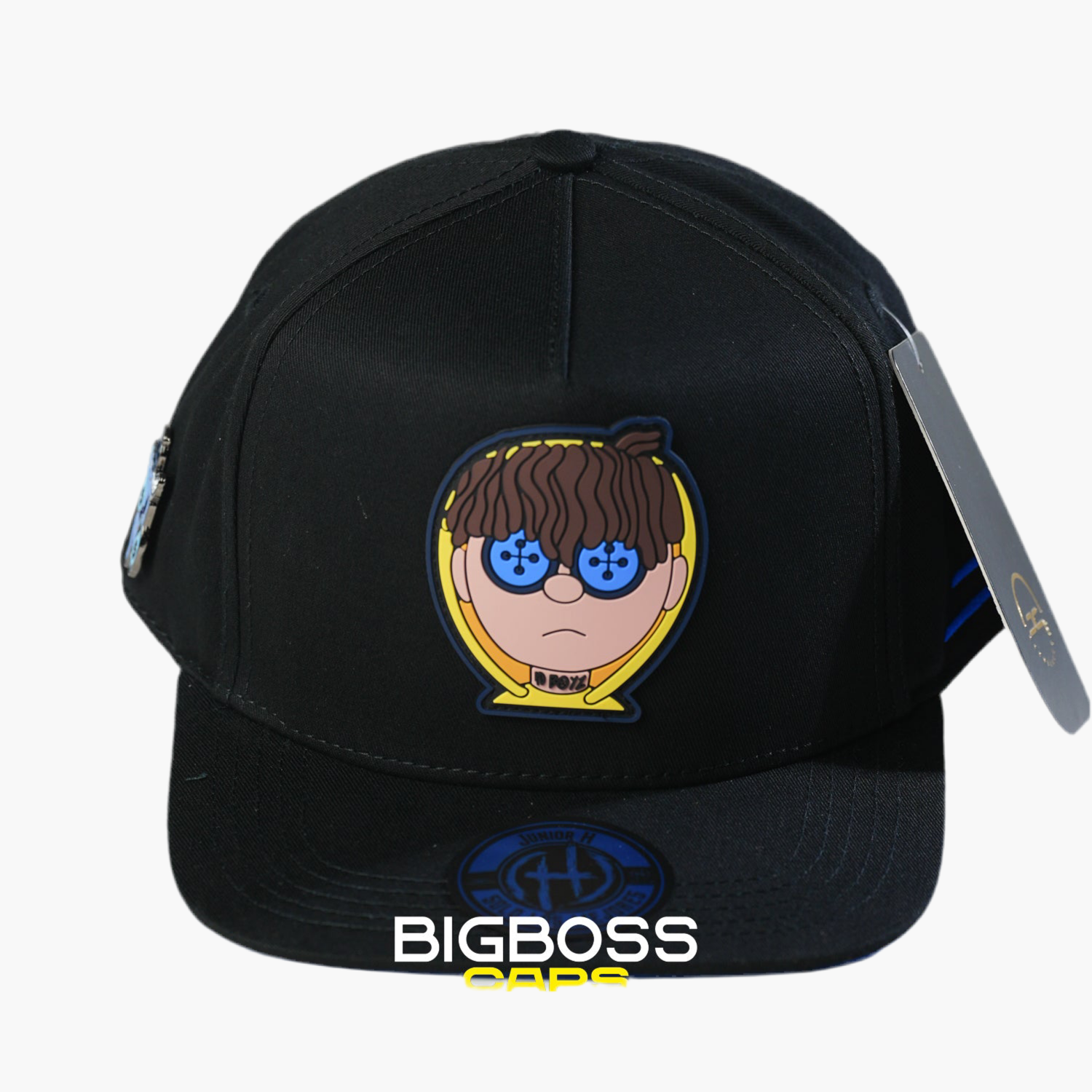 Gorra negra con logo de hule frontal representando la cara del artista Junior H. Esta pieza exclusiva es parte de la colaboración JC x Junior H, combinando estilo urbano y autenticidad. Ideal para seguidores que buscan un accesorio único con identidad musical y diseño distintivo.