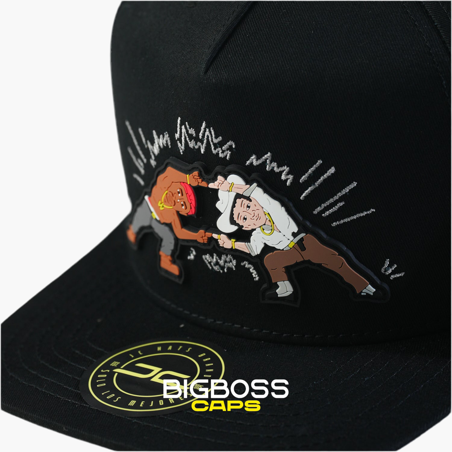 Esta gorra negra presenta un diseño único con un bordado frontal que muestra dos personas fusionándose, creando un estilo original y llamativo. Su forma curva ofrece comodidad y ajuste perfecto, ideal para complementar cualquier atuendo con un toque moderno y distintivo. Calidad y estilo se unen en este accesorio.