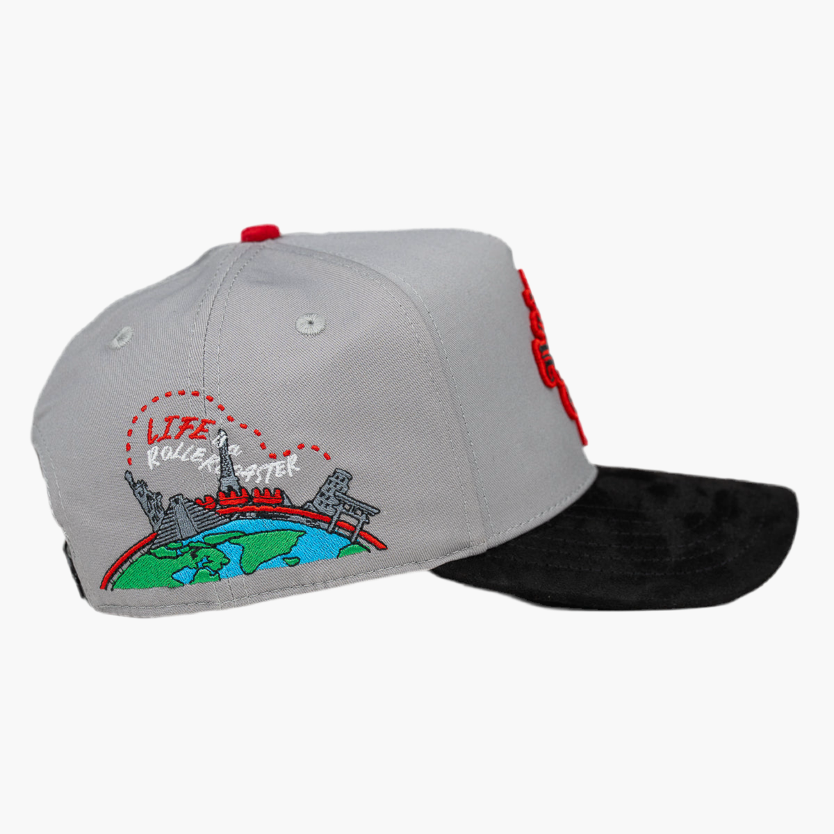 Esta gorra gris presenta en el centro un bordado rojo con la inscripción "University of Life" formando un círculo, en cuyo interior destaca una miniatura de la Estatua de la Libertad. Su diseño combina elegancia y simbolismo, ideal para quienes buscan un estilo significativo y moderno.