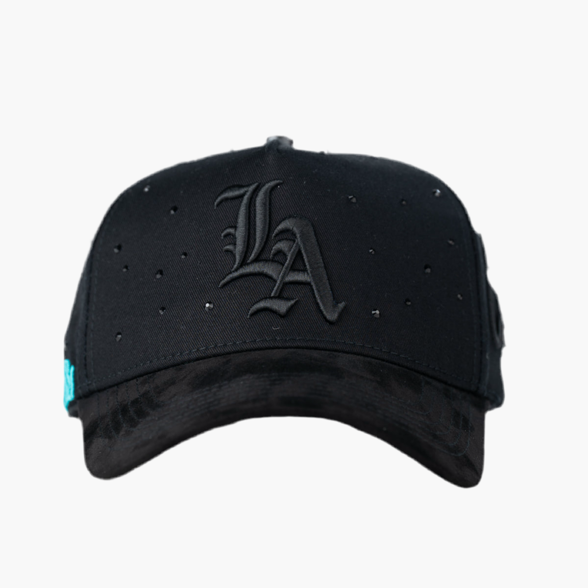 La gorra LA CITY OF STARS en color negro luce un logo LA adornado con cristales brillantes que aportan un toque de elegancia y distinción. Fabricada con materiales duraderos, combina estilo y confort, ideal para quienes buscan un accesorio sofisticado que resalte en cualquier ocasión urbana o casual.