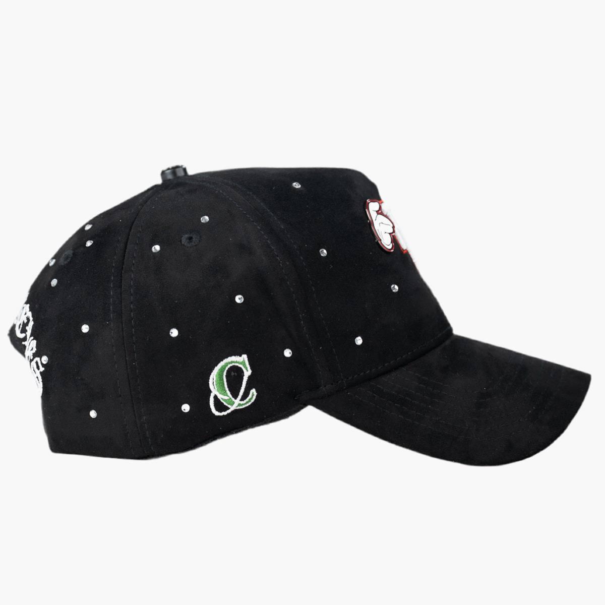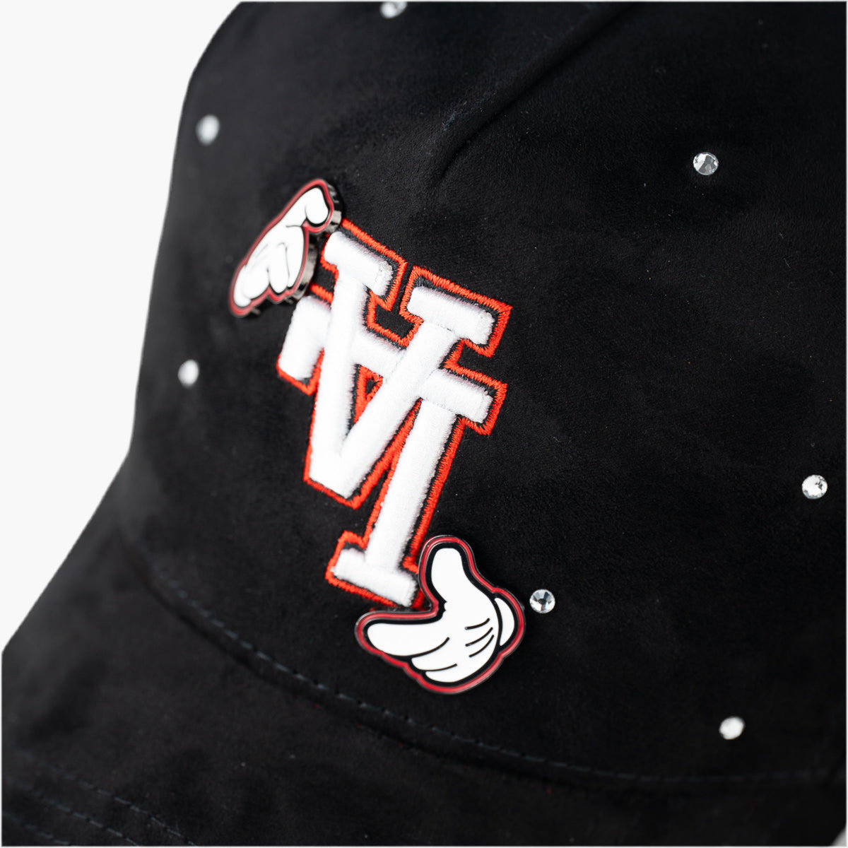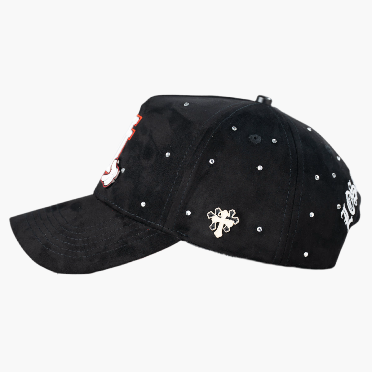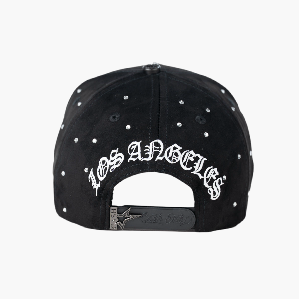 La gorra LA HANDS en color negro destaca por su logo LA adornado con cristales brillantes, que aportan un toque elegante y llamativo. Su diseño combina estilo y comodidad, ideal para quienes buscan un accesorio sofisticado que resalte en cualquier ocasión urbana o casual.