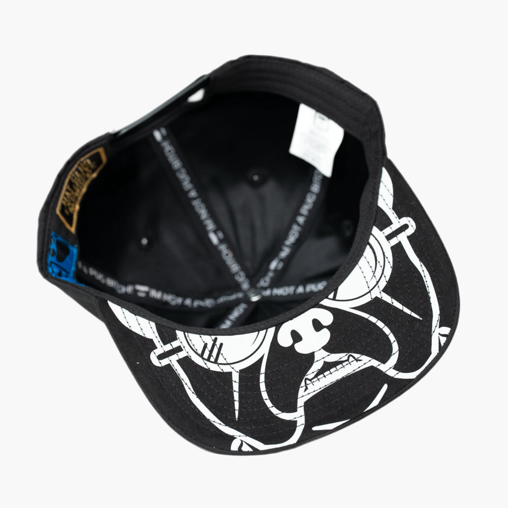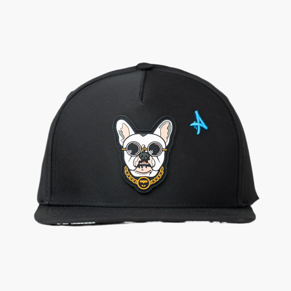 La gorra Angel Edition Plana de Markitos Toys es negra y cuenta con un logo de hule en forma de perro. Su visera curva proporciona un ajuste cómodo y estilizado, ideal para quienes buscan un toque único y moderno en un accesorio práctico para uso diario.