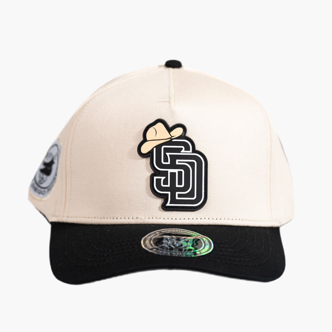 La gorra de béisbol de color beige el logo SD combina estilo y funcionalidad, con un pin de hule negro y un Borde blanco que destaca para los aficionados que disfrutan viendo béisbol, ofrece comodidad y protección solar durante los partidos al aire libre. Perfecta para mostrar tu pasión por el deporte.