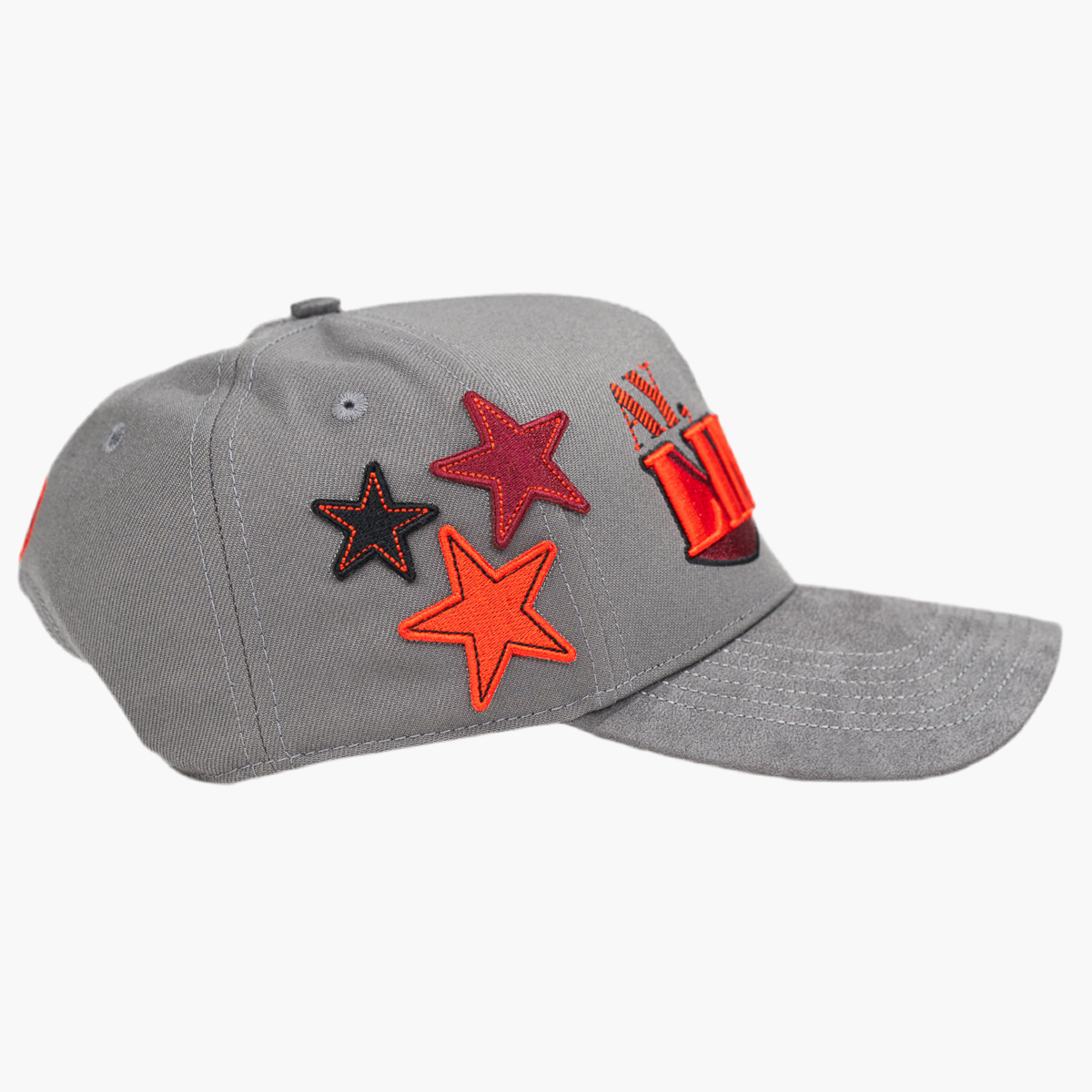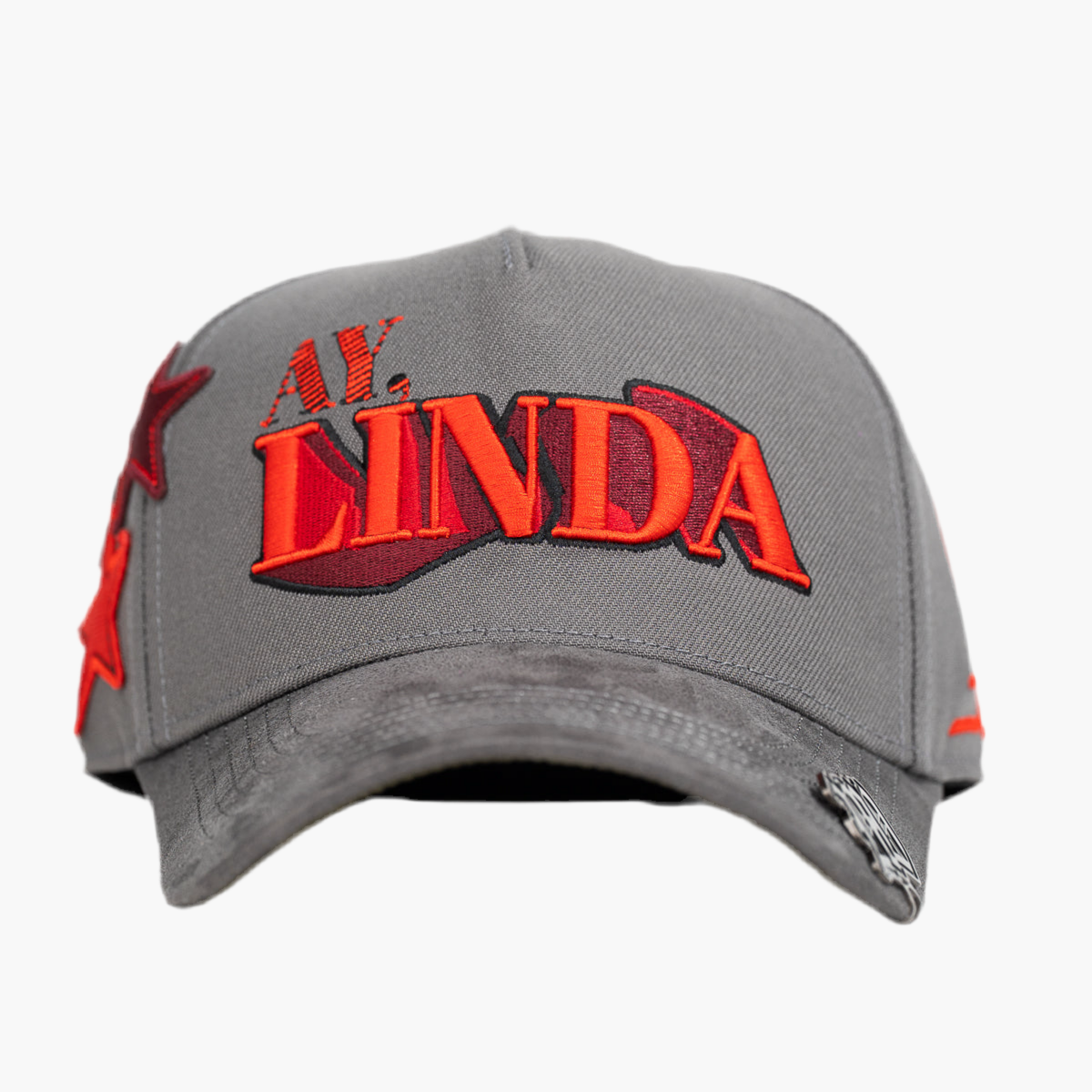 La gorra NETON VEGA LINDA en color gris presenta el texto “Ay Linda” en rojo vibrante, acompañado de un diseño de estrellas a un lado que aporta un toque único. Fabricada con materiales de calidad y ajuste cómodo, es perfecta para destacar con estilo y personalidad.
