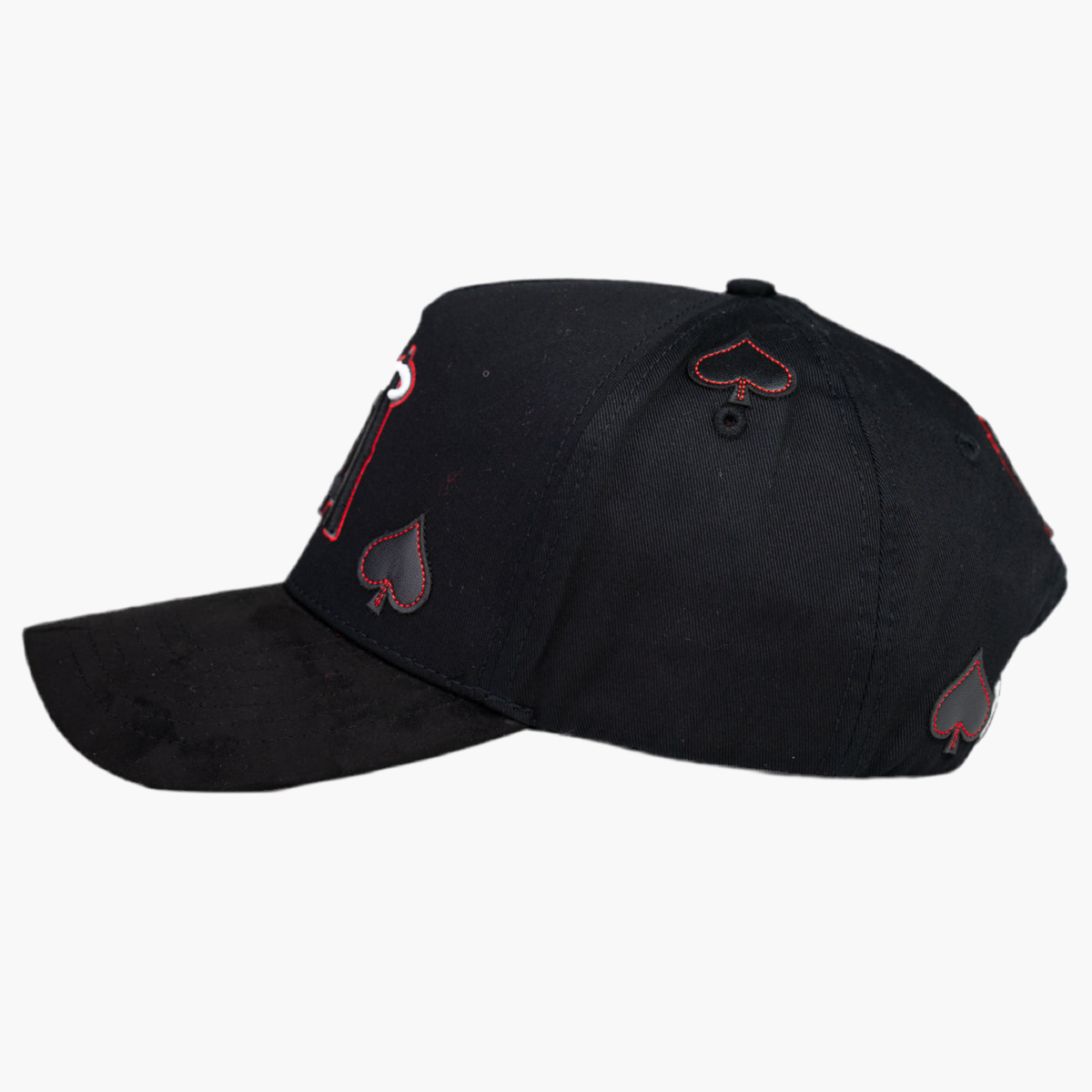 Gorra negra con un logo LA en color negro, resaltado por un borde en tono tinto que aporta contraste sutil y elegante. Su diseño minimalista combina estilo urbano y sofisticación, ideal para quienes buscan una gorra versátil que destaque sin perder la sobriedad. Perfecta para cualquier ocasión.