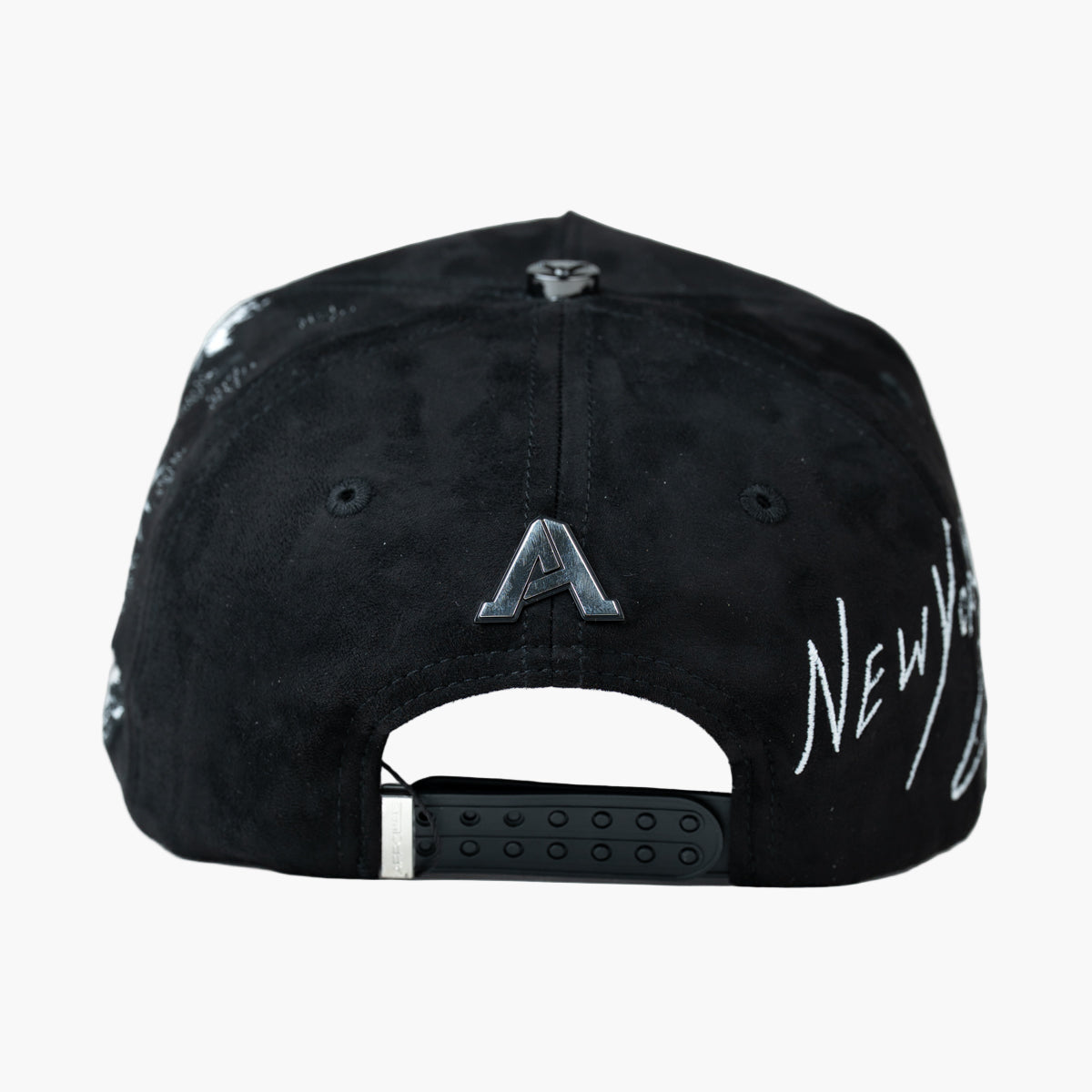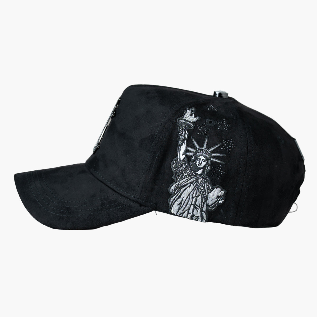 Gorra Arpol Hats con placa de metal decorada con pedrería estilo Nueva York. Diseño sofisticado que fusiona elegancia urbana con detalles brillantes. Un accesorio versátil ideal para cualquier ocasión, combinando comodidad y estilo contemporáneo.