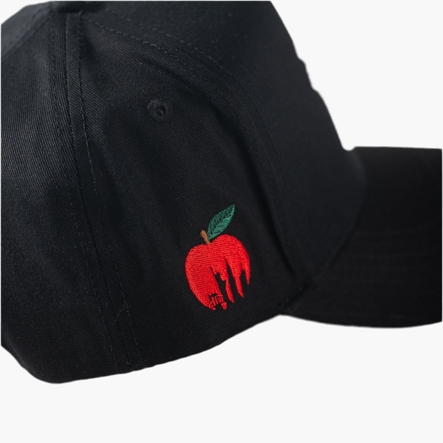 Gorra Negra con el logo "NY" en blanco en la parte frontal, que aporta un estilo clásico y elegante. En el lado derecho, un tomate rojo añade un detalle divertido y original, combinando sobriedad y color en un diseño versátil perfecto para cualquier ocasión casual.