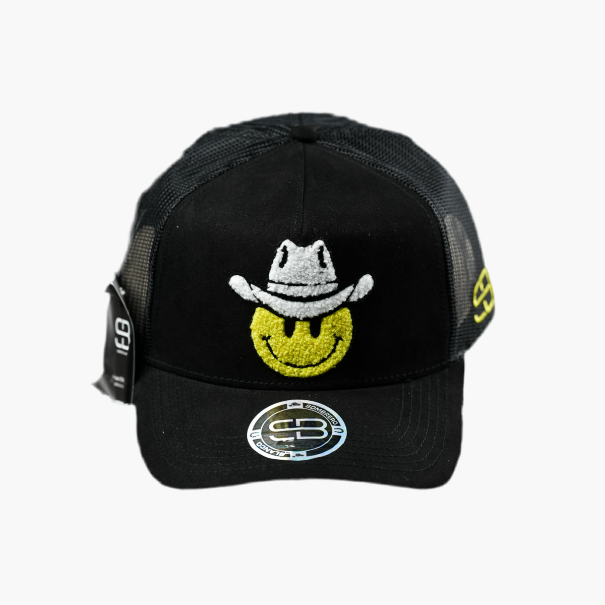 Gorra Sombrero Blanco color negro con logo Happy Face