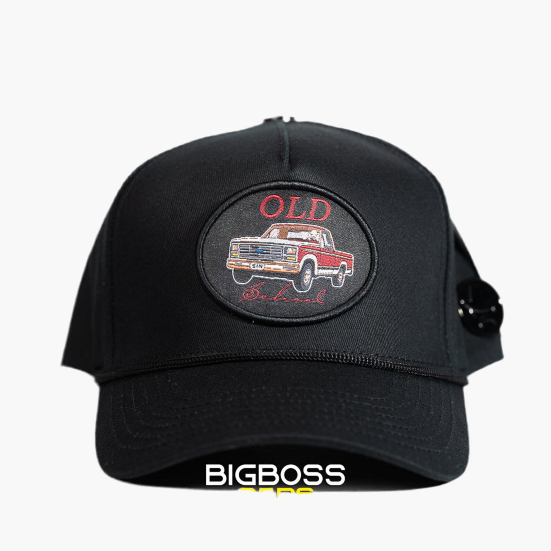 Gorra negra con parche central que muestra una camioneta roja, destacando su diseño clásico. En la parte superior lleva el texto "OLD" en rojo, reforzando su estilo vintage y auténtico. Perfecta para quienes aman la moda retro y quieren un accesorio con carácter.