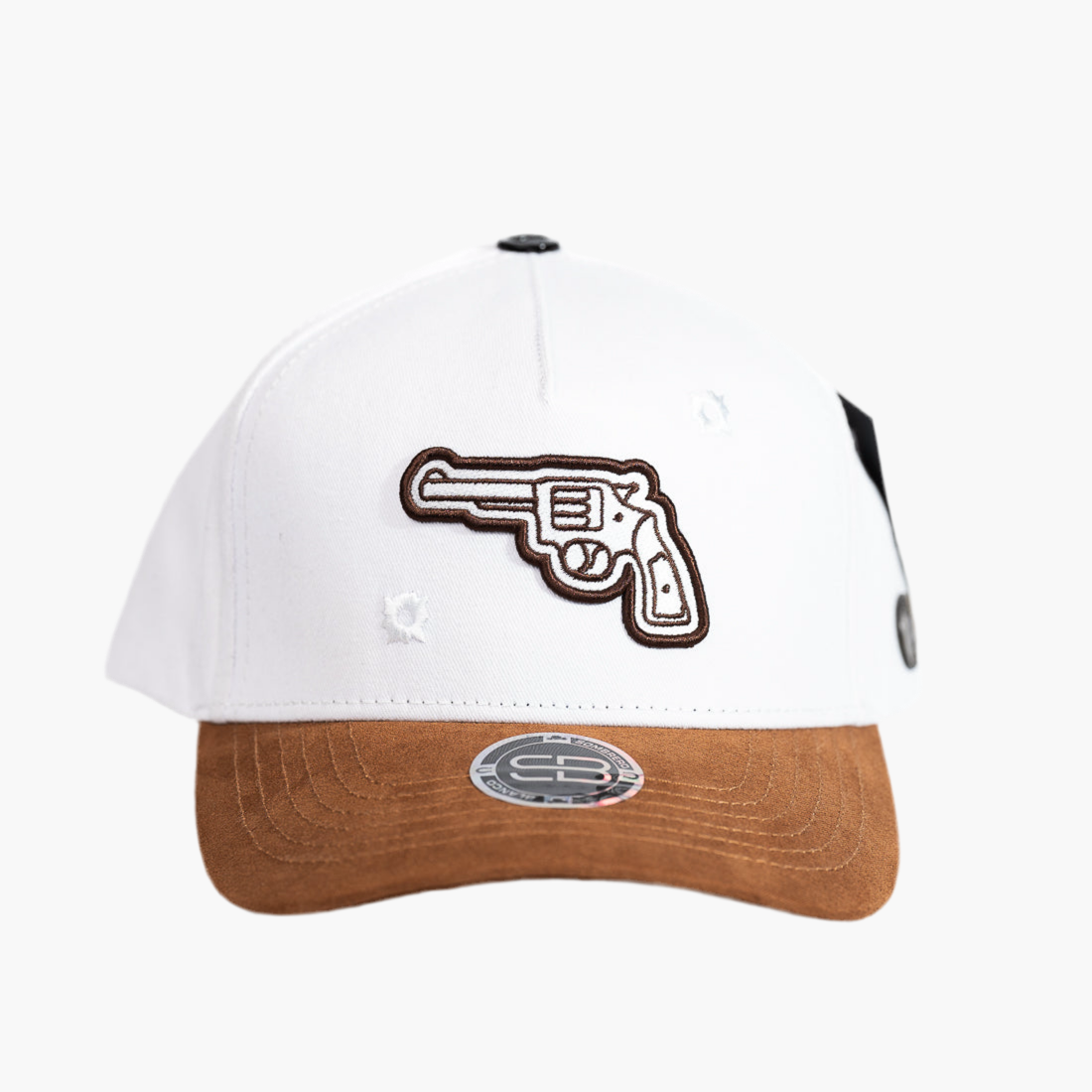 Esta gorra blanca destaca por su bordado central de una pistola en color café, que le da un toque único y llamativo. Su diseño sencillo pero distintivo es ideal para quienes buscan un accesorio casual con personalidad y estilo sobrio. Perfecta para complementar cualquier atuendo diario.