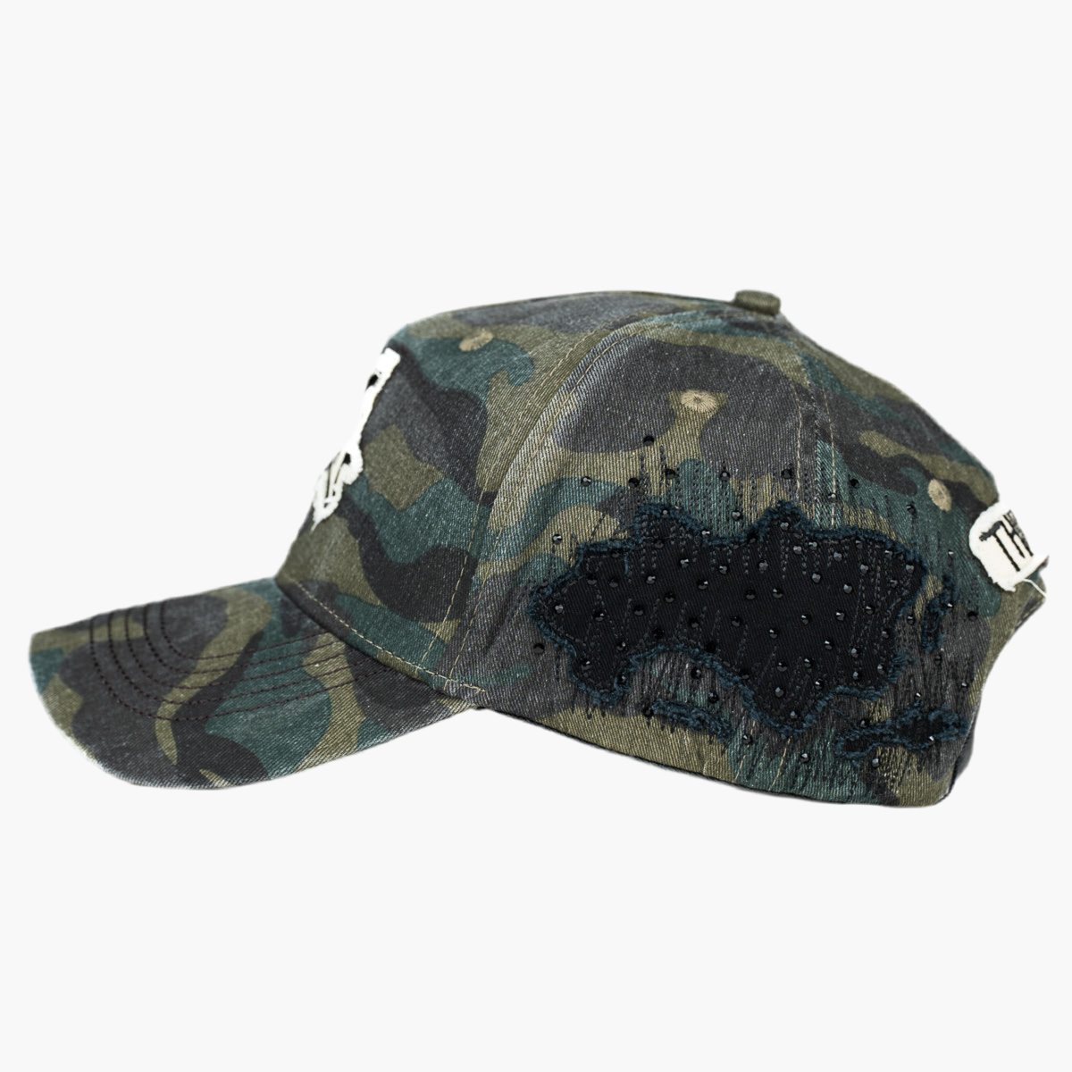 La gorra verde WAR READY presenta el logo desgastado de 31 Hats bordado en blanco y negro al centro. En la parte trasera, debajo, luce piedras brillantes que aportan un detalle único y llamativo. Este diseño combina estilo urbano con un toque sofisticado y distintivo.
