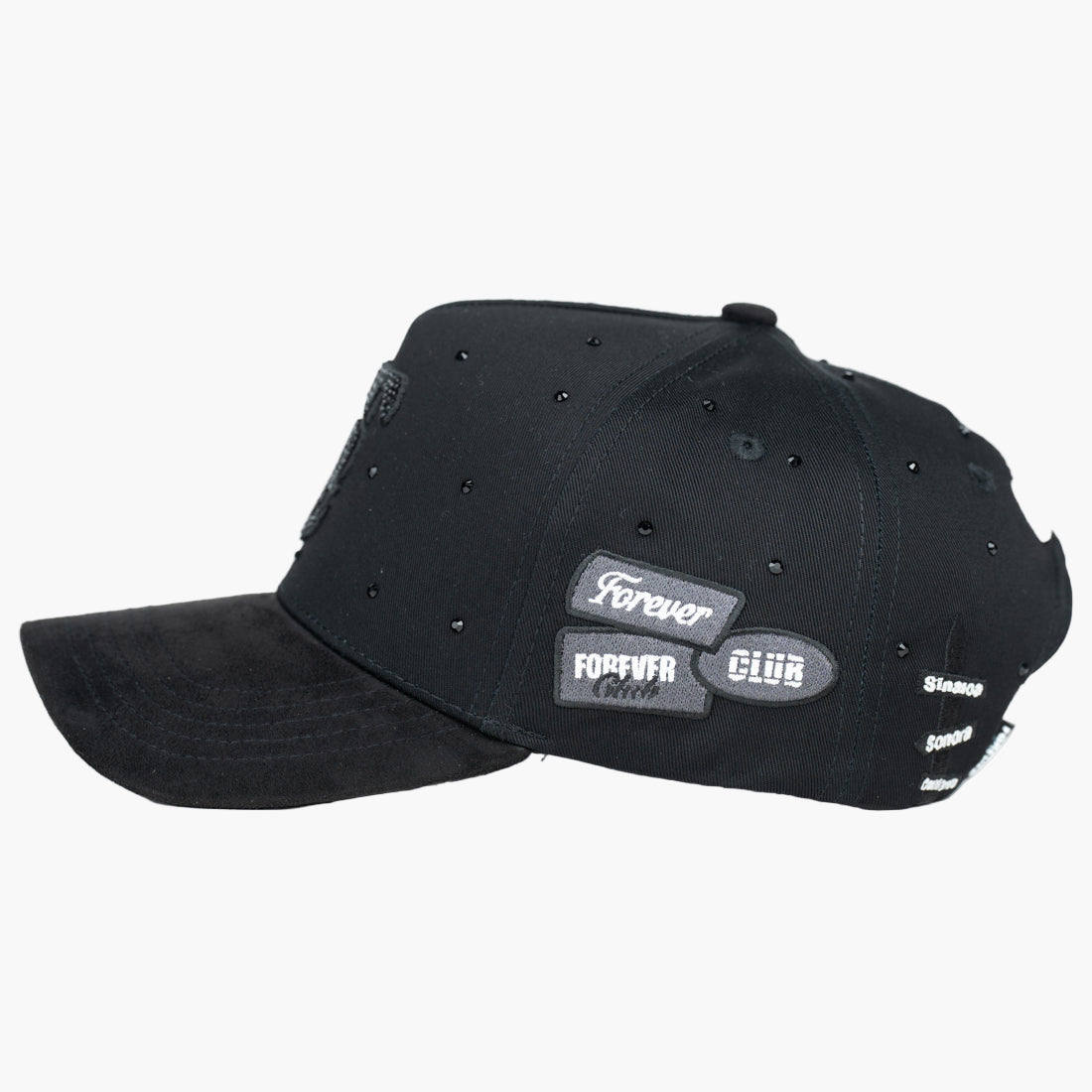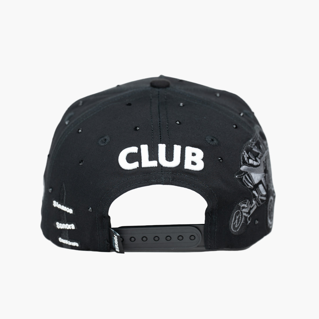 Gorra Tomateros en negro total con logo bordado. Diseño clásico y versátil para fans del equipo. Ajuste cómodo y material de calidad premium.