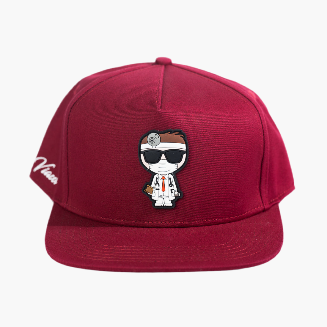 Esta gorra guinda cuenta con un diseño clásico y cómodo. En la parte frontal luce un pin de hule con la imagen de un doctor que lleva lentes negros, ofreciendo un detalle exclusivo y distintivo. Perfecta para quienes buscan un accesorio sencillo pero con personalidad única.